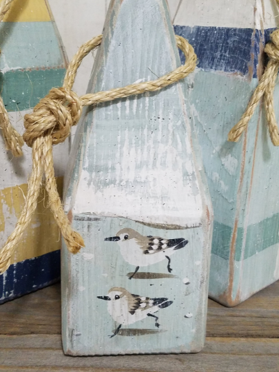This listing is for two 11 inch tall buoys and one 8 inch buoy with sanderlings.
