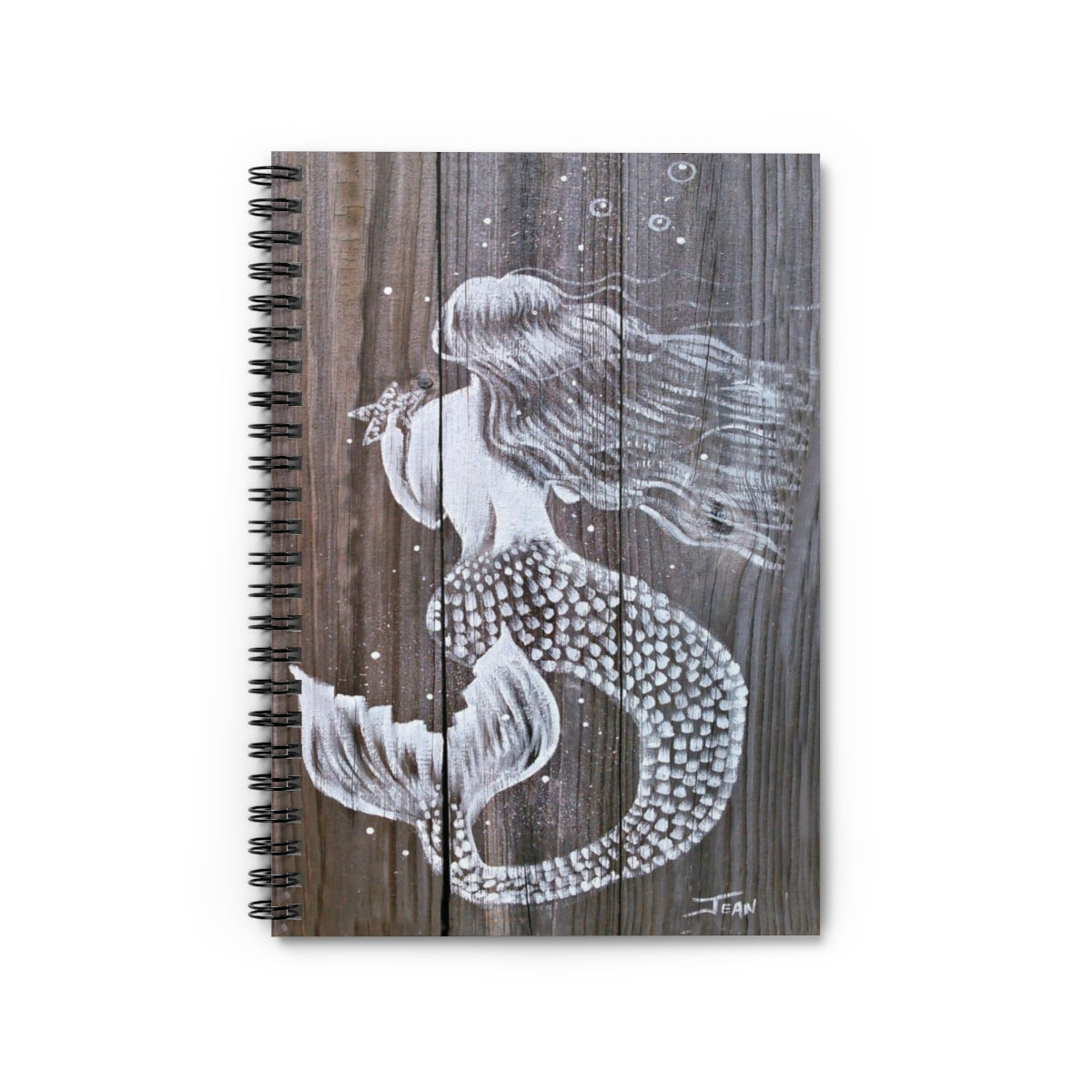 Mermaid on Driftwood with starfish 8x6 inch Spiral Notebook - 120 page Ruled Line