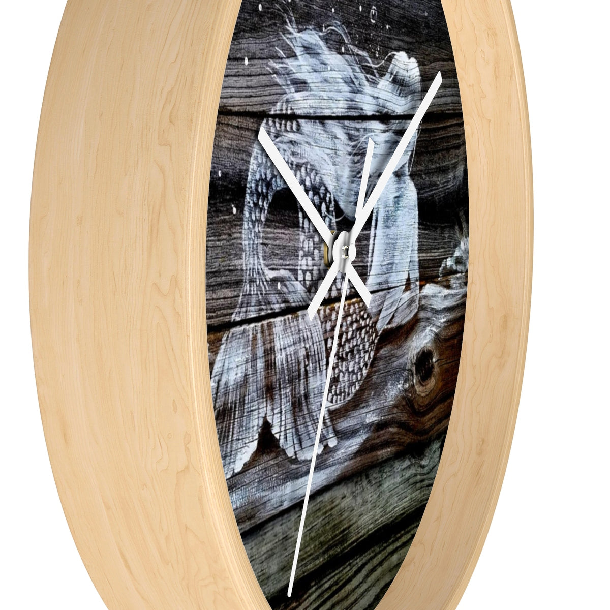 White Reclining Mermaid painted on dark wood fence pickets Wall clock